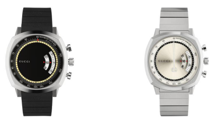如Grip Chrono系列计时码表,对于细节的把握就十分出彩,将繁复的设计以强韧有力的线条在中性化表盘之上悉数展现。Gucci 为此系列腕表巧妙打造了两个弧形窗口,分别显示小时和分钟,搭配外圈刻度营造向外延伸的层次感与秩序感,以细节演绎阳刚大气之美。两个表款均采用40毫米尺寸的表壳,其中一款以精钢表壳搭配黑色橡胶表带,表带上饰有互扣式双G图案;另一款采用精钢表壳和表链。时长一分钟的计时分别由环绕表盘周围运行的一颗红点或互扣式双G造型的指针完成。