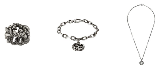 Interlocking G系列*饰的细节演绎则更为精彩,采用做旧处理的925银材质,锻造出具有复古光泽的独特马衔索链条,链条扭转呈现出粗犷华美的中性风格,而*标志性的双G造型也使得整体轮廓更具有*辨识度,是经典设计与现代摩登工艺的绝妙结合,展现鲜明的都市风情。