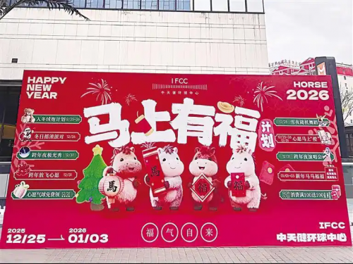 除了热闹的活动之外,各大商圈的消费优惠也诚意满满,从餐饮团购到零售满减,让市民在享受乐趣的同时,花钱更划算、消费更尽兴。IFCC中天健环球中心自12月25日至1月3日推出“新年马马福福”活动,名字含“马”或属马的顾客进店消费可享专属福利;同时推出“消费满100元送100元代金券”活动,代金券可在2026年1月4日至31日使用,把优惠延续到新的一年。国芳中心推出“1元团888元大礼包”,内含“马上有钱”小马挂件、代金券及礼金,花小钱即可解锁多重惊喜。