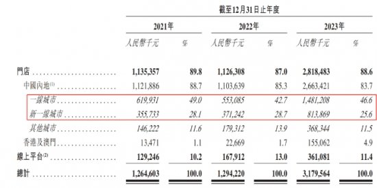 按地理市场划分,公司的收入主要来源于中国大陆的一线城市,于2023年,约占总收入的46.6%。其次是新一线城市,约占同期总收入的25.6%。