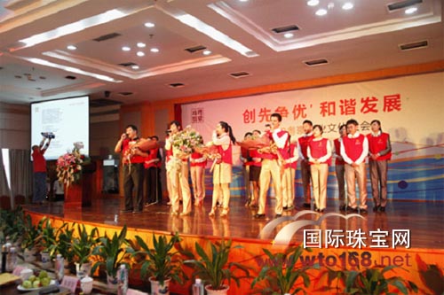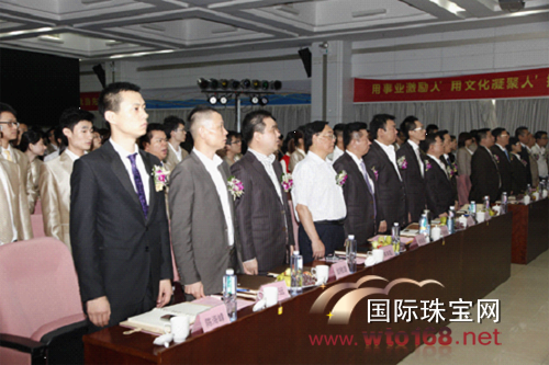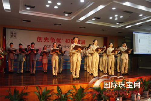 6月24日,一年一度的粤豪珠宝企业文化大会在美丽的盐田隆重召开,公司全体员工及嘉宾热情出席,共同见证了粤豪珠宝企业文化建设的辉煌成果。大会梳理了公司文化建设的基本脉络,充分肯定已获成绩,并明确指出了未来发展的方向。粤豪珠宝董事长周厚厚,总裁周德奋,上海交通大学教授、粤豪珠宝顾问陈育星等分别发表了热情洋溢的致辞,深入解读企业文化的精髓,发人深省,令人振奋。大会中间穿插了丰富多彩的文艺节目和时尚流行的微博有奖互动环节,引发与会者的极大兴趣。![]() 粤豪珠宝全体与会人员齐唱国歌 大会开始,全体与会人员齐唱国歌,热情高亢。随后播放的《粤豪珠宝企业形象宣传片》,画面壮观,气势磅礴,让每一位粤豪人心潮澎湃,倍感自豪。