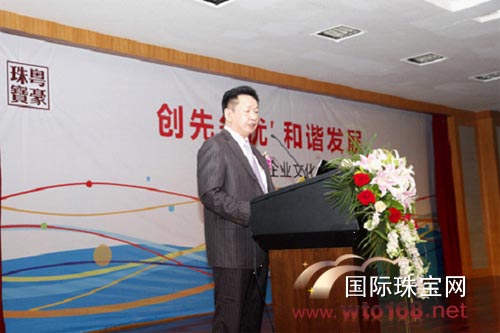 ![]() 陈育星教授宣讲粤豪珠宝使命及愿景 接着上海交通大学教授、粤豪珠宝顾问陈育星教授宣讲了粤豪的使命和愿景。他说:“粤豪的使命,就是要通过传承、创新将灿烂的东方文化艺术推向世界,让华夏文明闪耀全球;粤豪的愿景,即是希望通过用人文打造*从而成为东方珠宝文化的领跑者。我们抓住了企业发展的核心,也抓住了黄金珠宝行业的根本。” ![]() 周德奋总裁总结企业文化工作 身为粤豪掌门人,总裁周德奋全面总结了企业文化工作。他说:“在企业文化领导小组的努力下,公司员工积极配合,社会广泛参与,《企业文化手册》成功宣导,《企业歌曲》完美谱写,官方微博颇具影响,《齐家》内刊即将发行,香港欢乐行、齐家亲子乐等活动办得有声有色,成果卓著。”谈到未来展望,他希望大家齐心协力,以主人翁的姿态开拓、创新、务实,使粤豪得以健康、稳步、快速地发展,为实现神圣的企业使命和企业愿景而奋斗! ![]() 李晓燕书记汇报党工委工作 ![]() 周德奋总裁带领粤豪党员进行入党宣誓仪式 “创先争优强组织合力,科学发展建和谐粤豪。”在党支部书记李晓燕的领导下,粤豪党建工作屡创佳绩。会上,她详细介绍了粤豪党支部的发展、组织建设、队伍素质建设、创先争优活动和未来发展。接着,一批新党员进行了庄严的入党宣誓仪式。