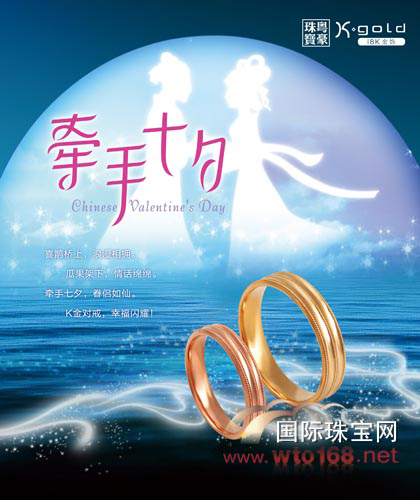 晴朗夏夜,繁星闪耀,一条银色的星河横贯天际,东西两岸各有一颗明亮的星星隔河相望,这便是牵牛星与织女星。七夕,无疑是中国传统节庆中*富浪漫气息的节日。在这**不仅有喜鹊搭桥,牛郎织女在鹊桥上相见,更有成千上万对情侣在守望着牵牛织女,分享着爱人间彼此的温暖。![]() ![]() 粤豪珠宝设计师陶醉于七夕的美丽传说,为祝福天下有情人终成眷属,“牵手七夕”18K金对戒心动上市。该系列产品共有情定三生、爱的印记、简单爱、一线牵、绚爱以及爱的密纹等六款情侣对戒,工艺细致无暇,设计简洁大气,完美展现出年轻时尚一族自由、独立的爱恋观,以及追求个性、简洁的纯恋情怀。 ![]() ![]() 闪耀在指尖不只是靓丽前沿的K金对戒,更是爱人之间相爱一生的承诺与守候。据说,情侣之间的戒指可以让两个相爱的人心相连,意相通,锁住两人的爱恋一生一世,永恒不变。“牵手七夕”系列对戒,精选的18K金材质赋予爱美女性无穷魅力的同时,更为时尚男性增添了几分硬朗气质。气质温婉的女性柔情遇上个性硬朗的男士魅力,注定要成就一段如仙眷侣的浪漫爱恋。 ![]() 真爱从来不需千言万语的赘述,一款对戒,一次心动甚或一个眼神,足以畅叙心中的浓浓爱意。牵手七夕,携真爱,一生相拥! |
