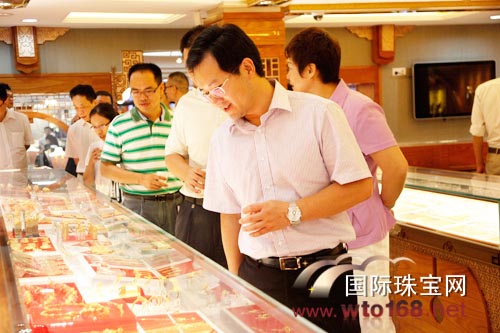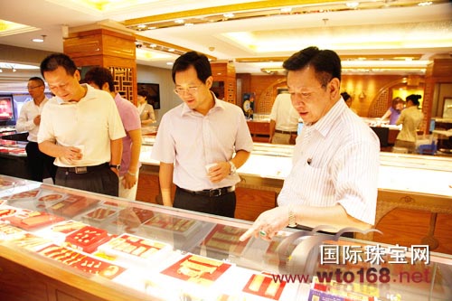粤豪珠宝董事长周厚厚向常务副区长刘卫翔一行介绍中华福金*