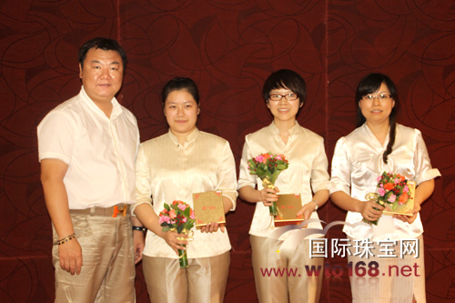 粤豪珠宝常务副总裁王志顺与获奖选手合影