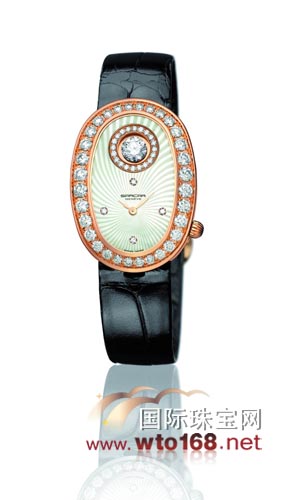 豪门世家的设计师赋予奥德赛女士腕表系列众多精致的细节设计,充分地体现了跨越时代的隽永优雅风范。优美的椭圆造型,光彩熠熠的钻石镶嵌,都在诠释女性的优雅和华贵。表圈上镶满钻石,透过蓝宝石表面,柔和的曲线在珍珠贝母的表盘上延伸,完美地体现了灵感的来源“太阳羽毛和钻石光芒”。一颗0.5克拉(美国GIA国际*具权威性珠宝鉴定机构认证)璀璨闪耀的精选单钻在一圈小钻石之中旋转,仿若天际的一颗星辰引领方向,也像母亲那颗永恒、无私的爱心。四颗显示时间的小钻完美镶嵌之上,表耳更是与众不同的设置在四点钟方位,增添了这款腕表的**优雅。双鳄鱼皮表带配以18K白金钻石镶嵌表扣,舒适美感绝伦。此系列有18K红金和白金两款。