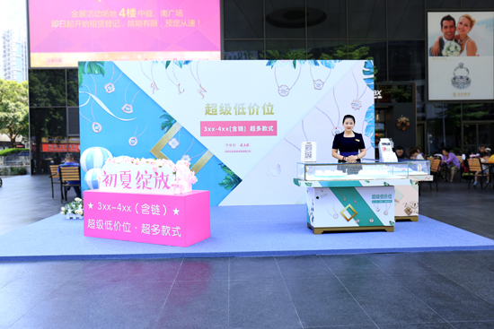 6月11日,深圳市金佳和珠宝有限公司(旗下梦雅恒*)《初夏绽放》主题活动于金展珠宝广场如期启幕,推出价格在3XX-4XX元的K金镶嵌类产品活动,供新老客户选购,活动将持续一周至6月15日。