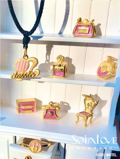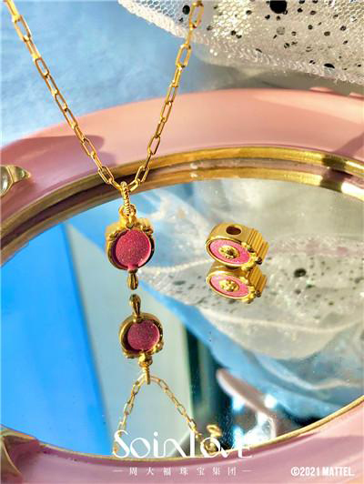 周大福珠宝集团旗下轻奢蜜恋珠宝*SOINLOVE,为了满足女孩们的少女梦,突破传统黄金工艺、颠覆传统黄金颜色,开发出专利黄金工艺技术——gold Sweeties Pink蜜粉金。SOINLOVE与芭比的联名合作,让蜜粉金和芭比粉有了新的色彩体验,创新研发胭脂粉,比蜜粉金多一份轻熟,对芭比粉的全新诠释,如芭比公主般百变。